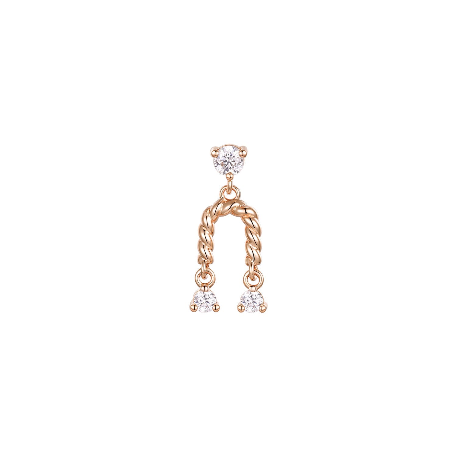 One round CZ with rope texture upside down gold U and one round CZ dangle at each end