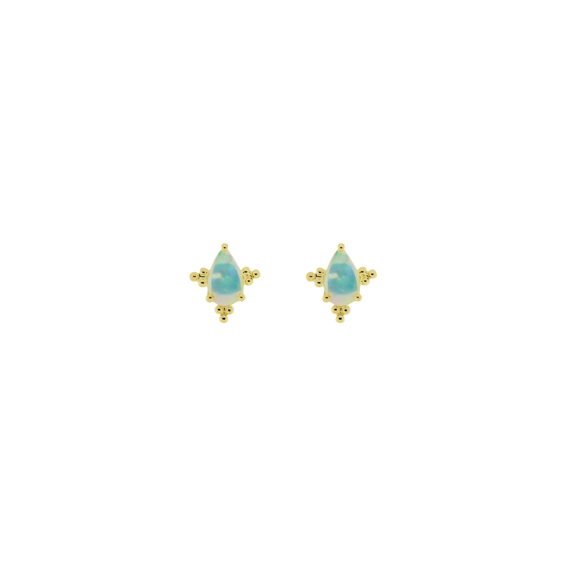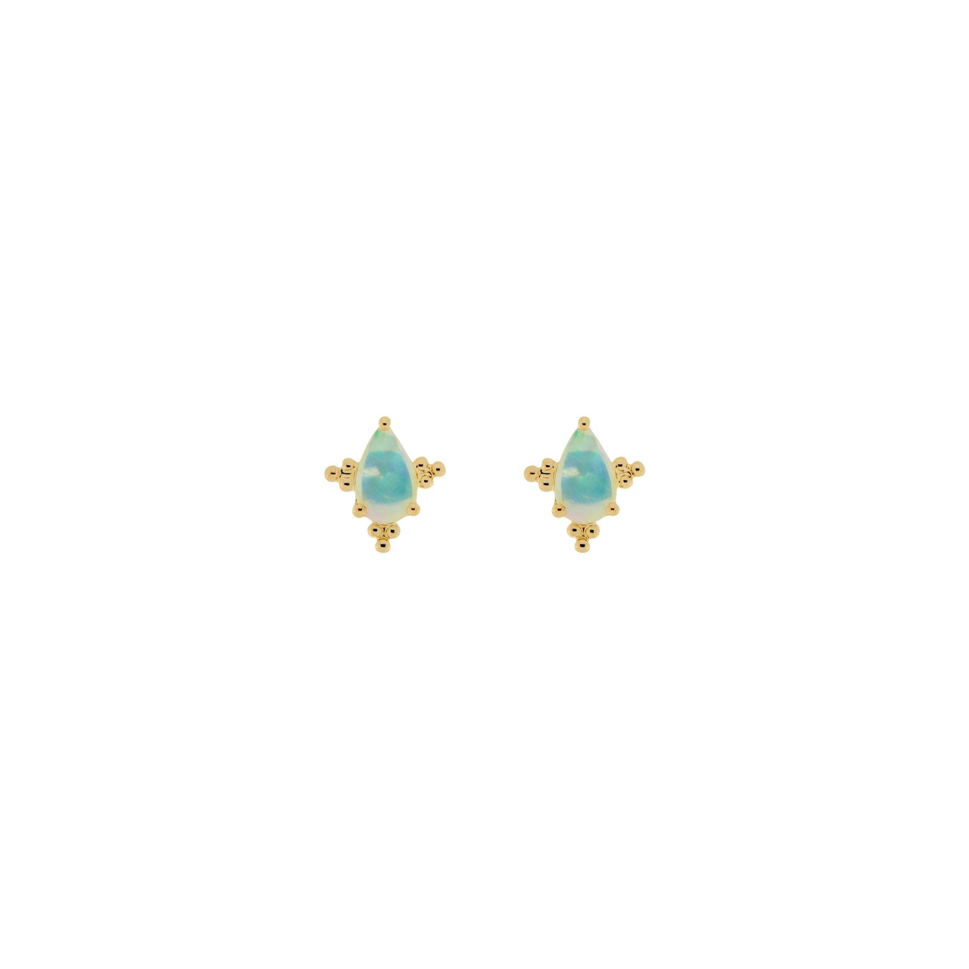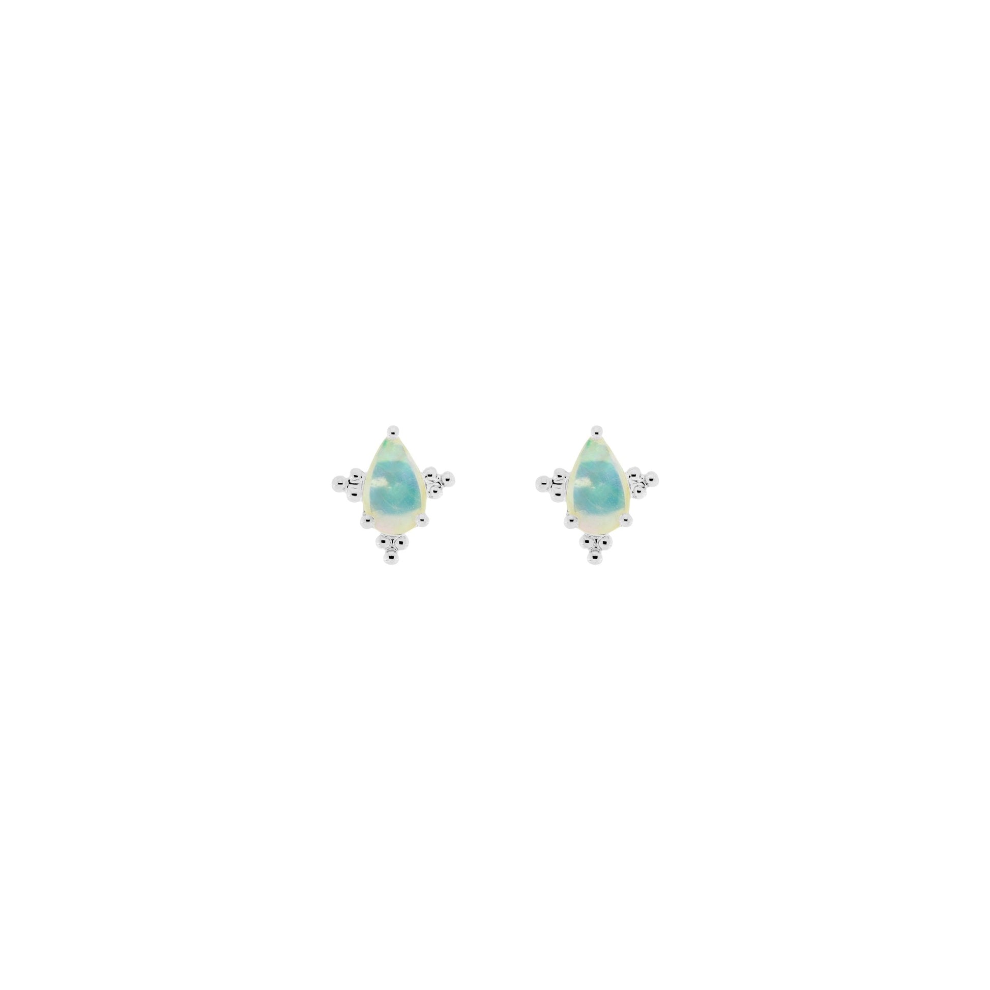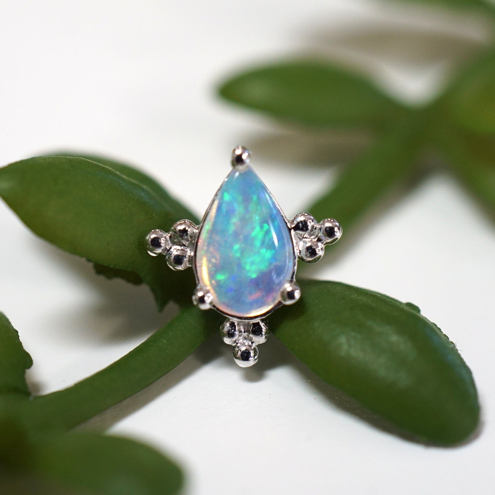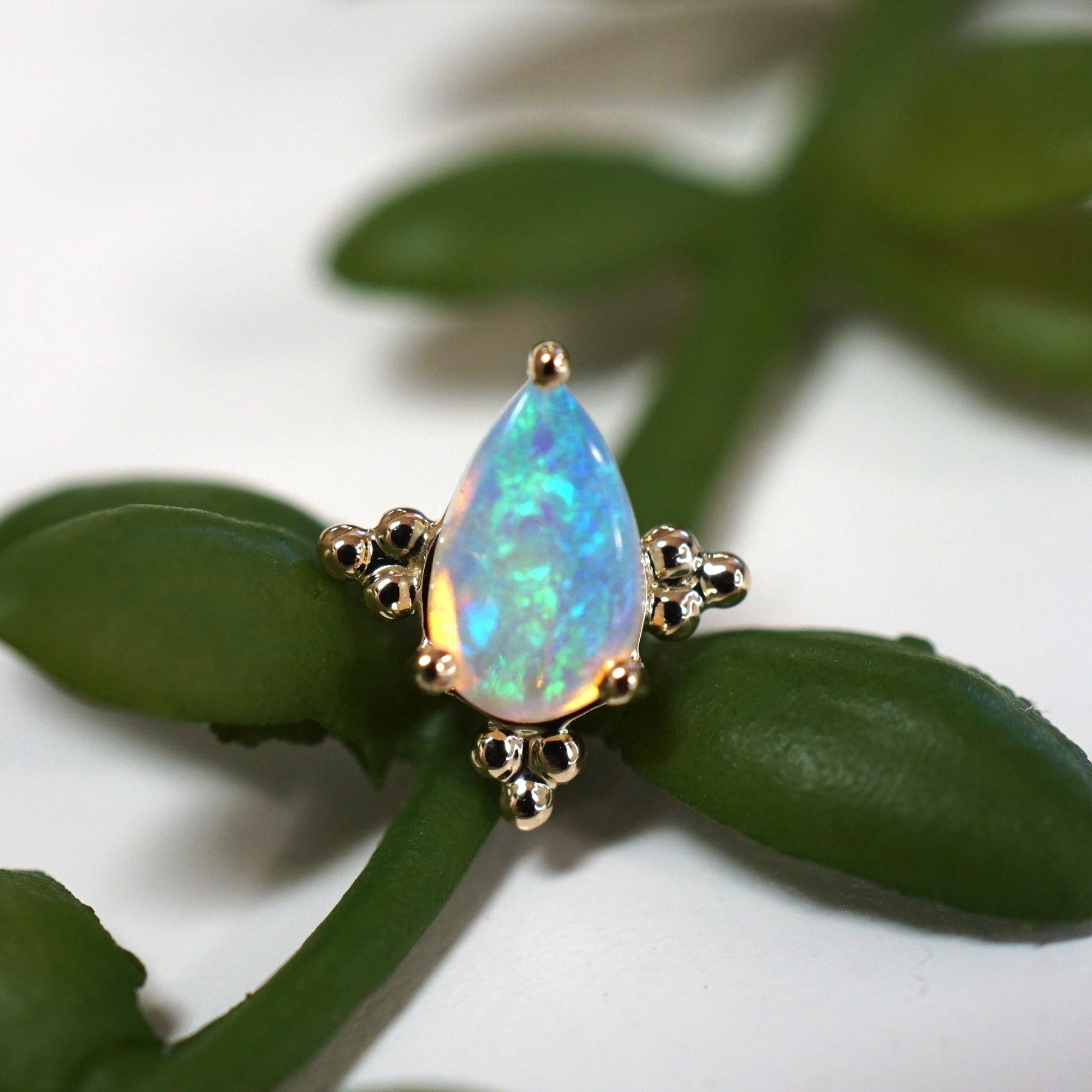 Pear shaped gemstone prong set decorated with 3 triple bead clusters