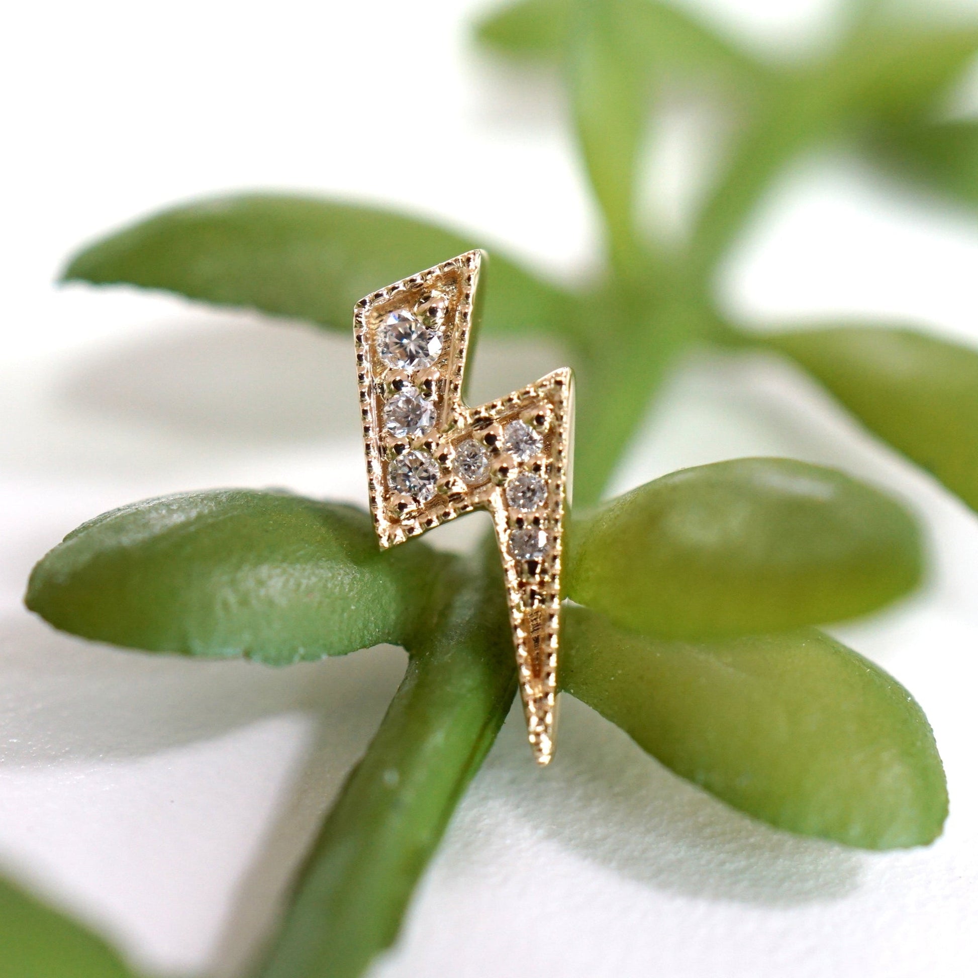 Lightning bolt with diamond pave and milgrain edge