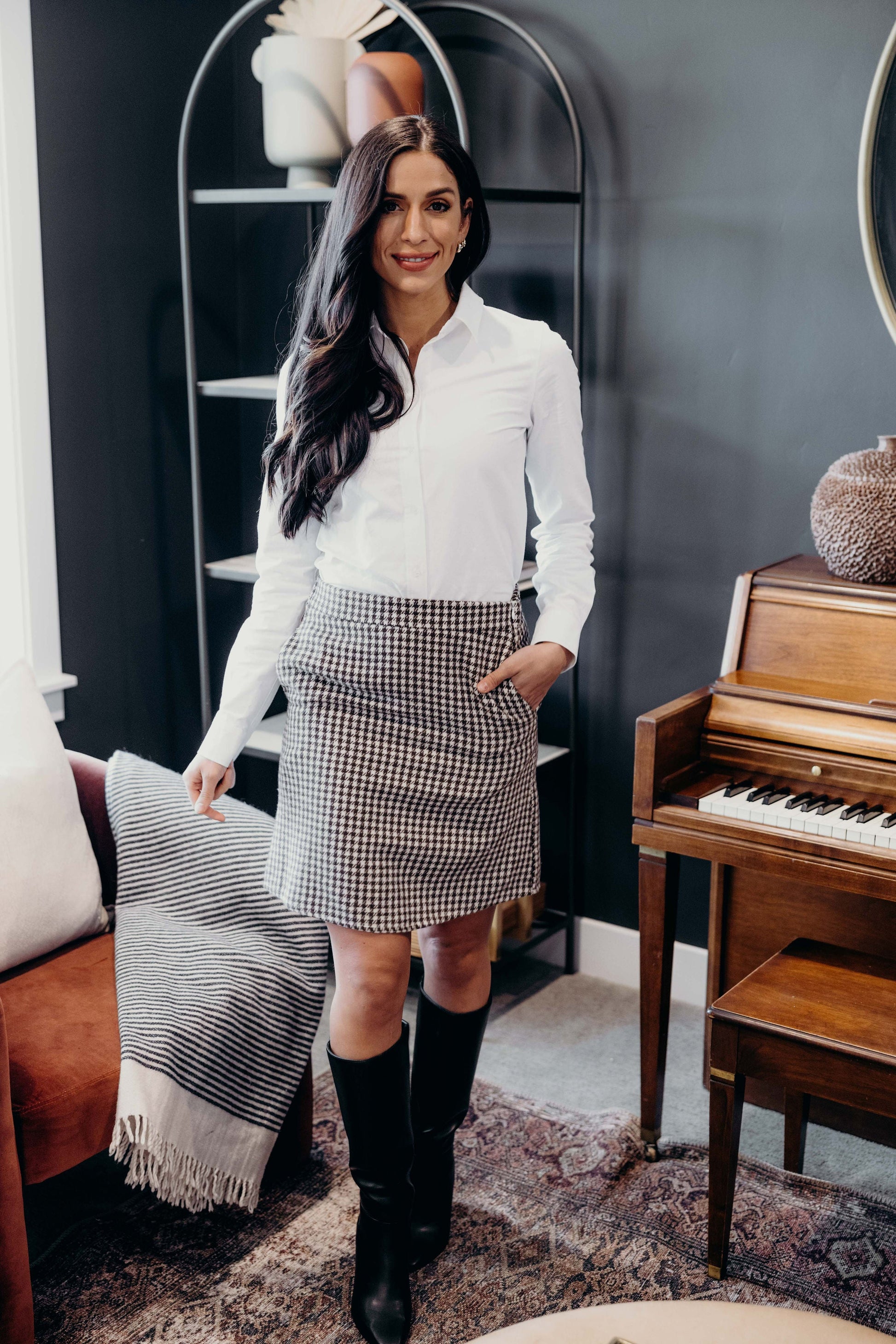 MINISKIRT IN OLIVE HOUNDSTOOTH