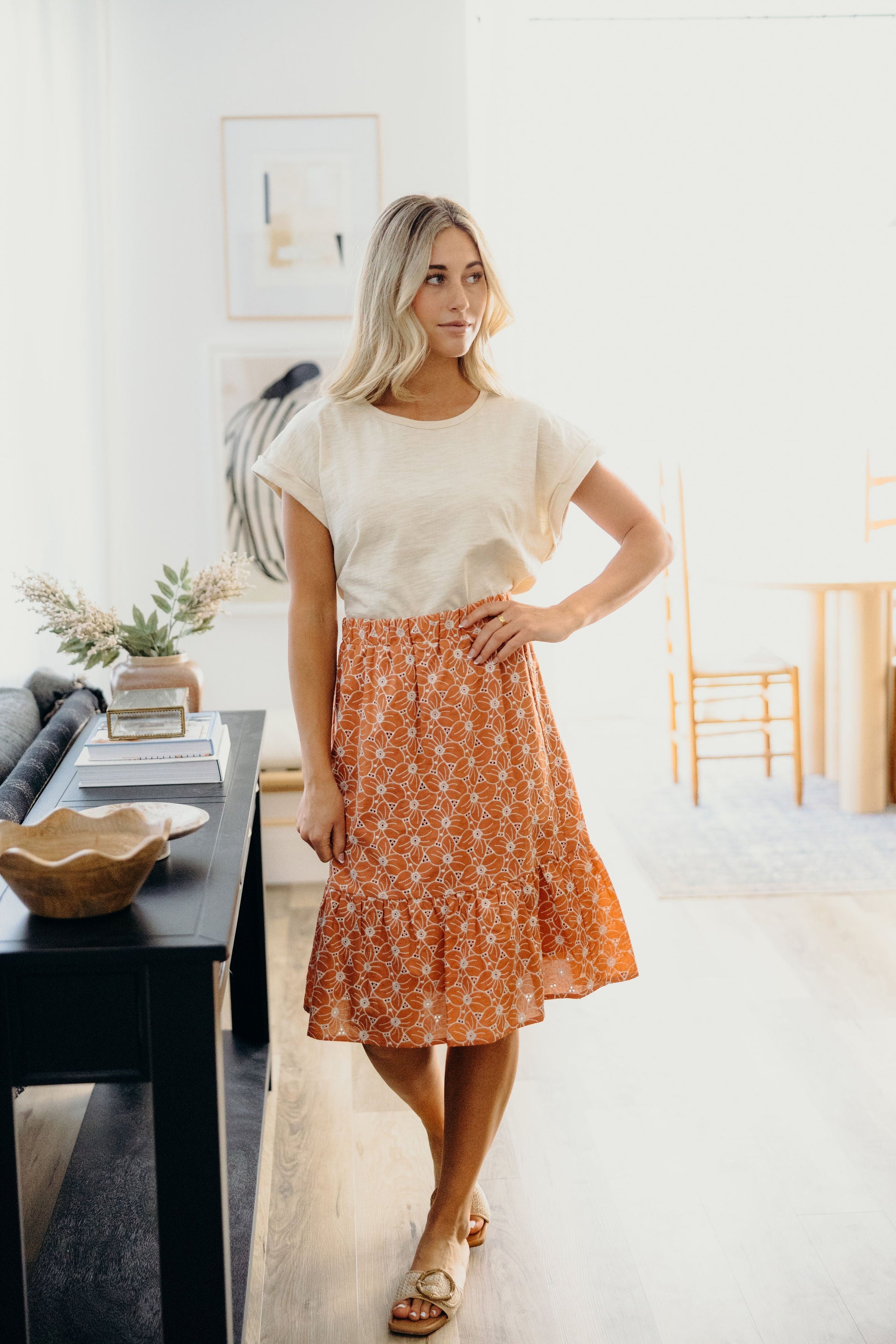 EMBROIDERED ORGANZA SKIRT IN BURNT ORANGE FINAL SALE