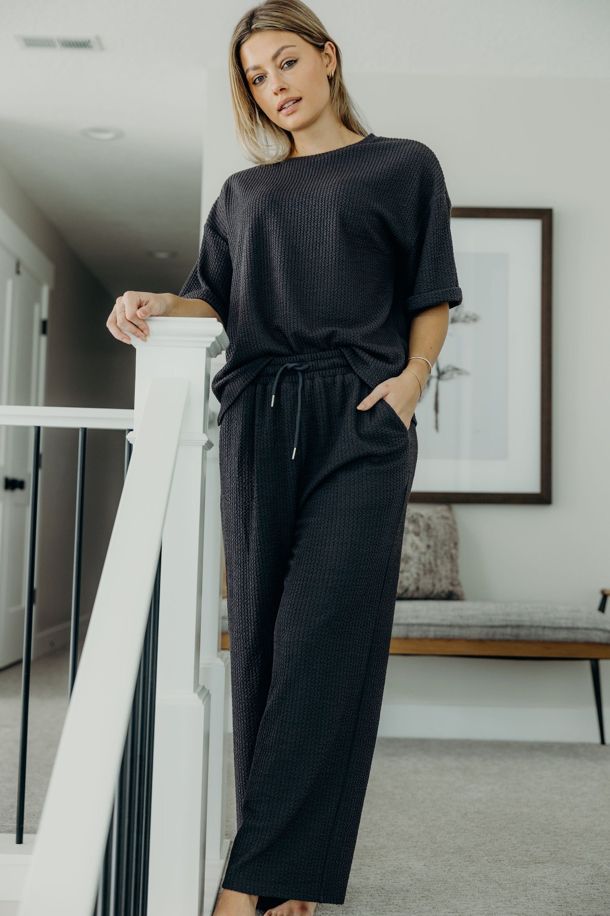 TEXTURED KNIT PANT IN RICH CHARCOAL FINAL SALE