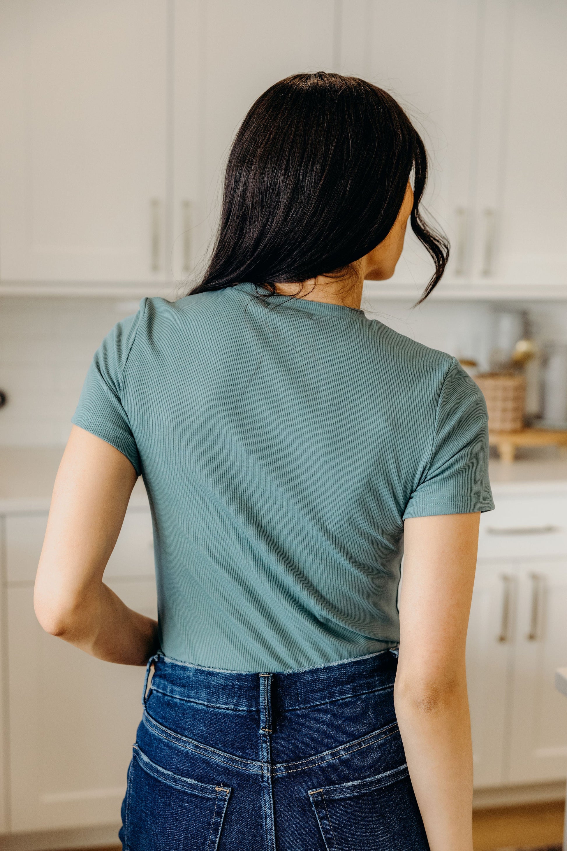 SHORT SLEEVE RIBBED TEE IN GLACIER LAKE FINAL SALE