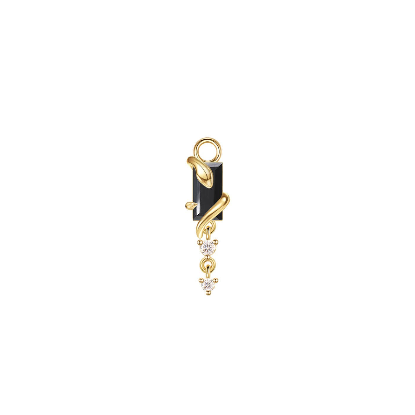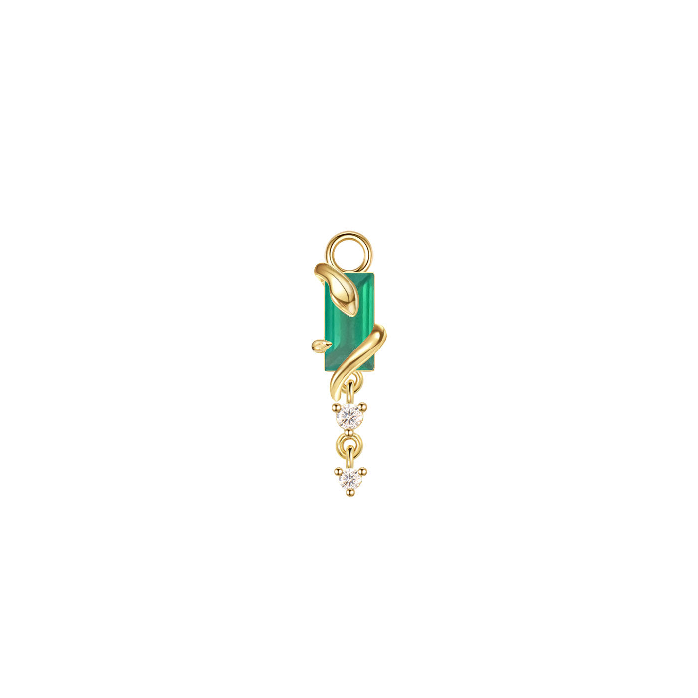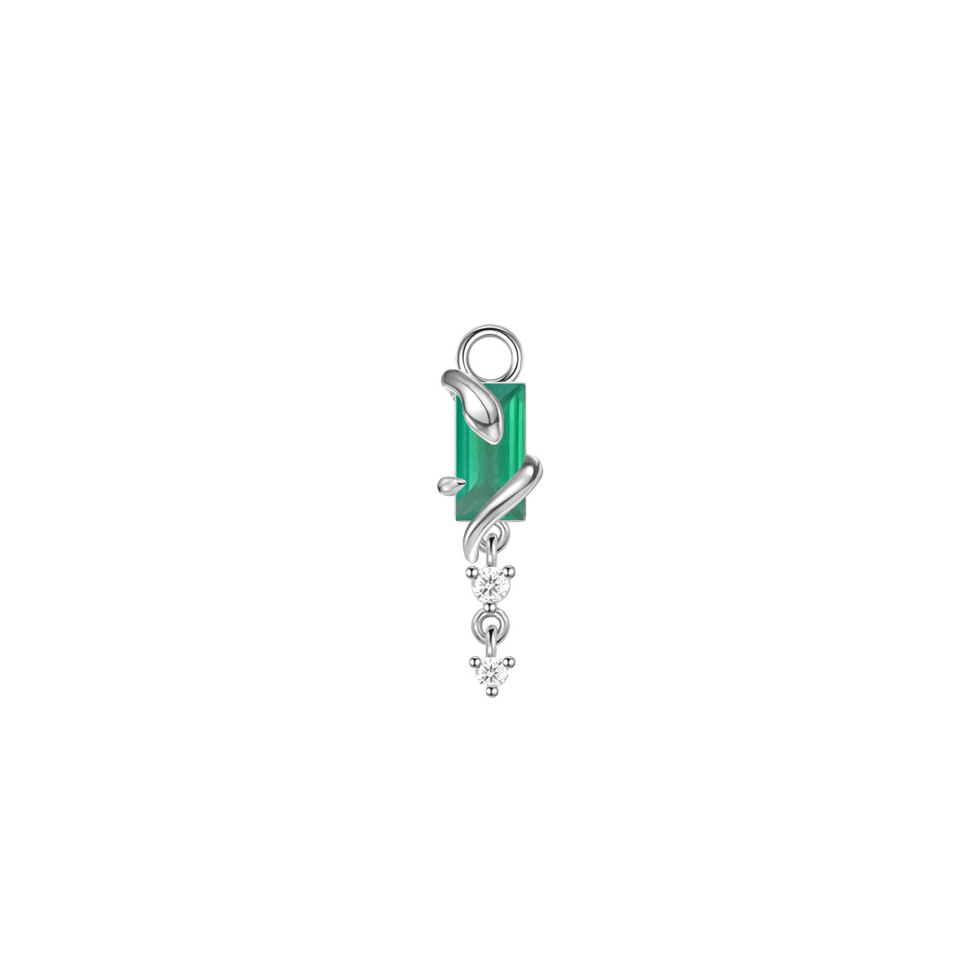 Smooth slithering snake wrapped around a baguette gemstone with 2 round dangling diamonds