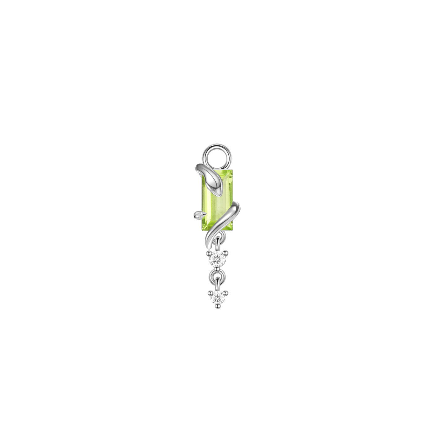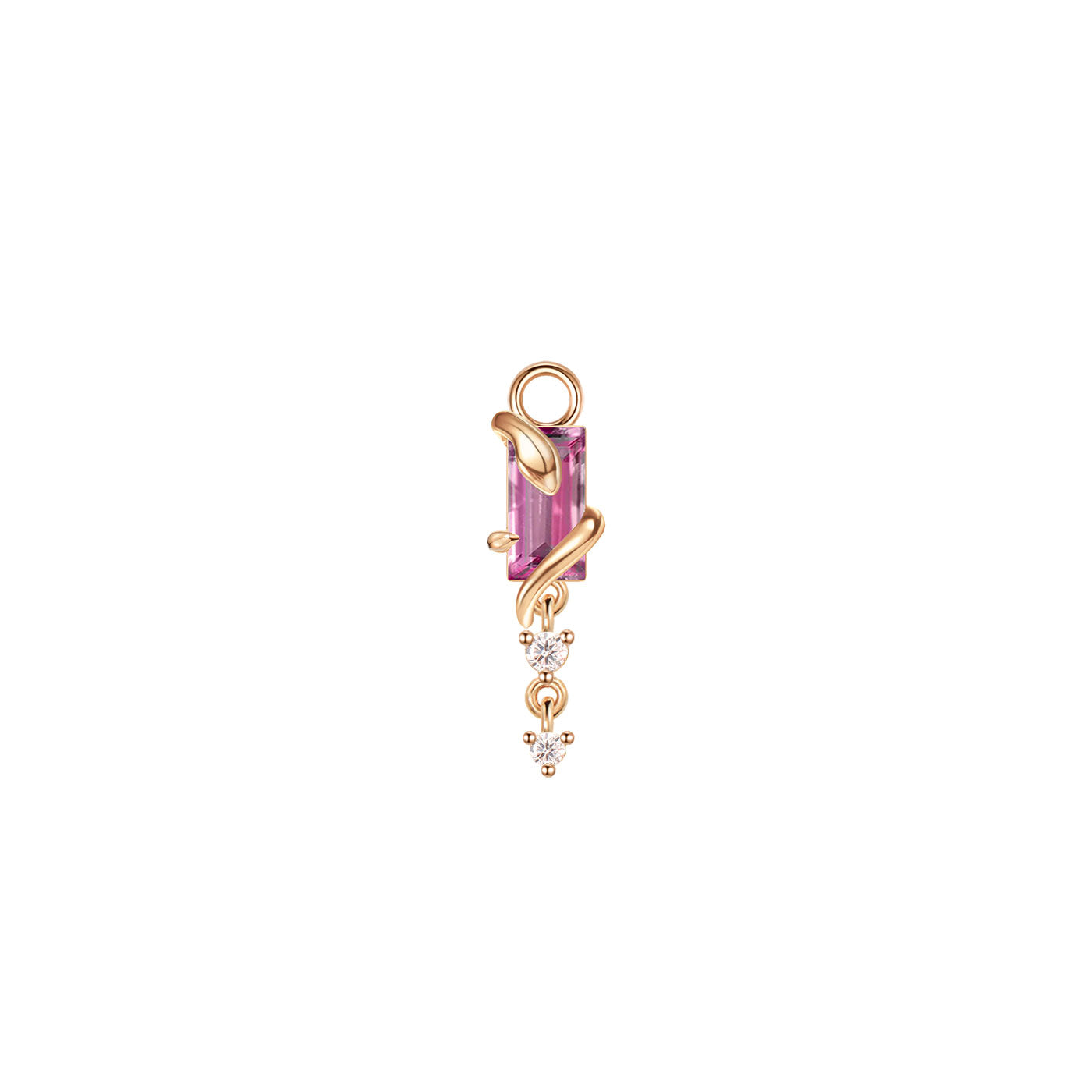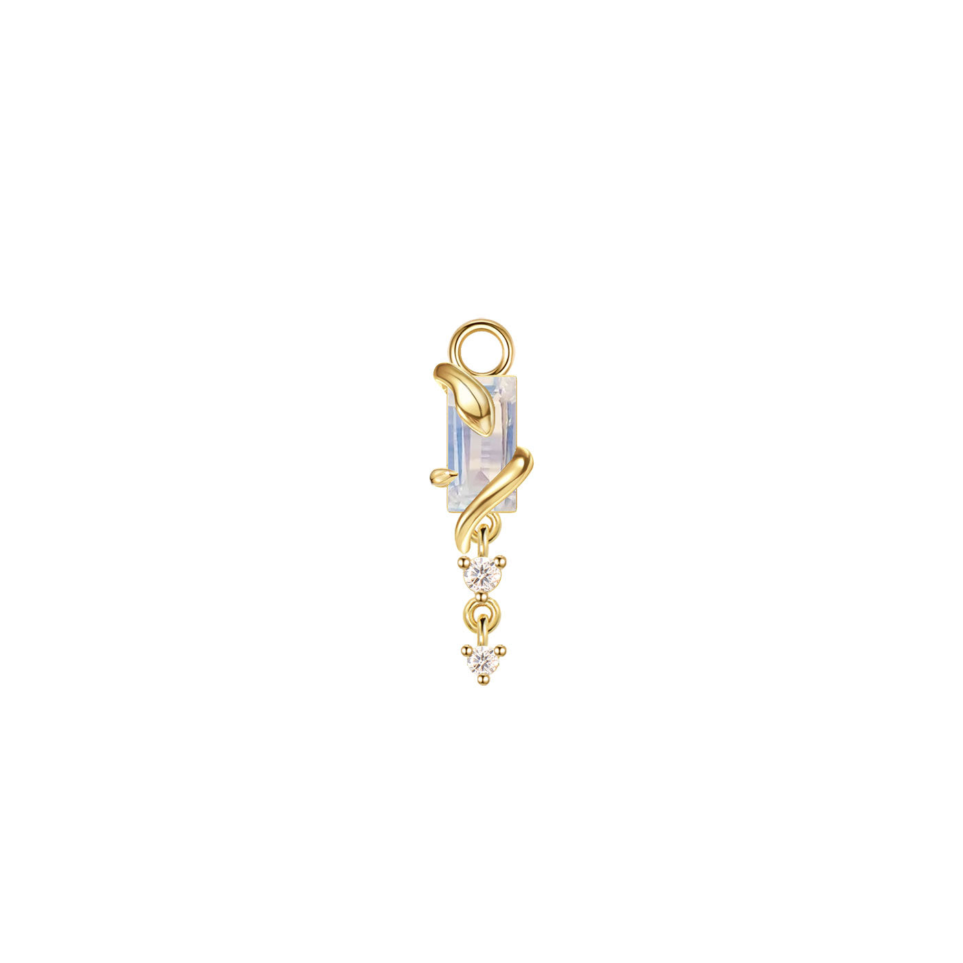 Smooth slithering snake wrapped around a baguette gemstone with 2 round dangling diamonds