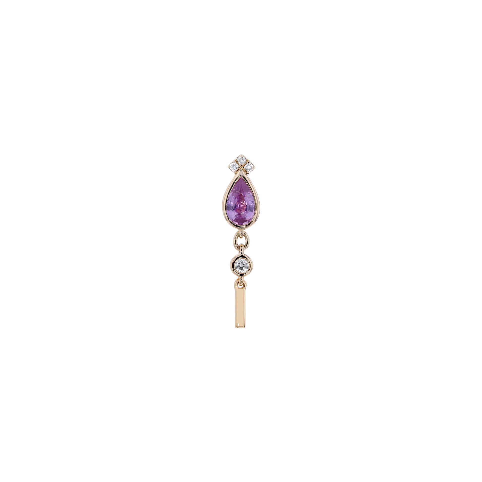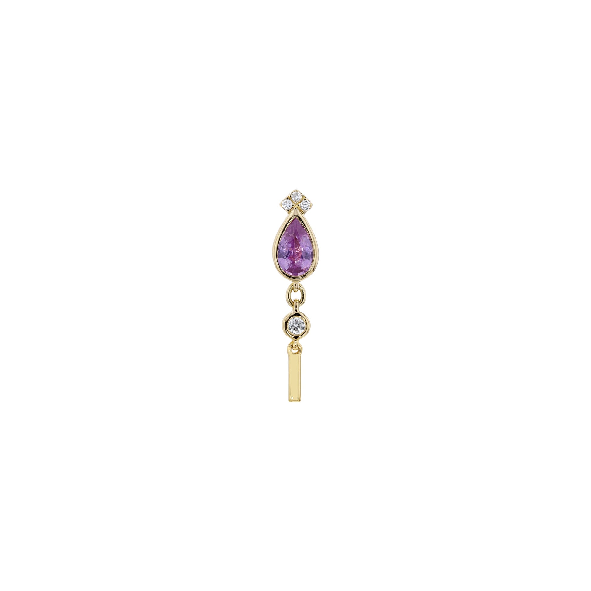 Pear faceted gemstone and diamond accent on top with a diamond dangle and bar below