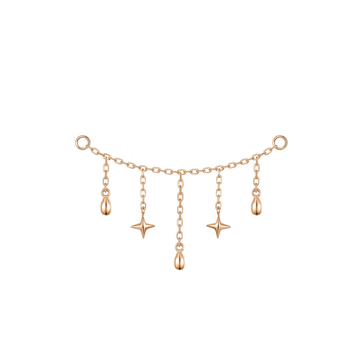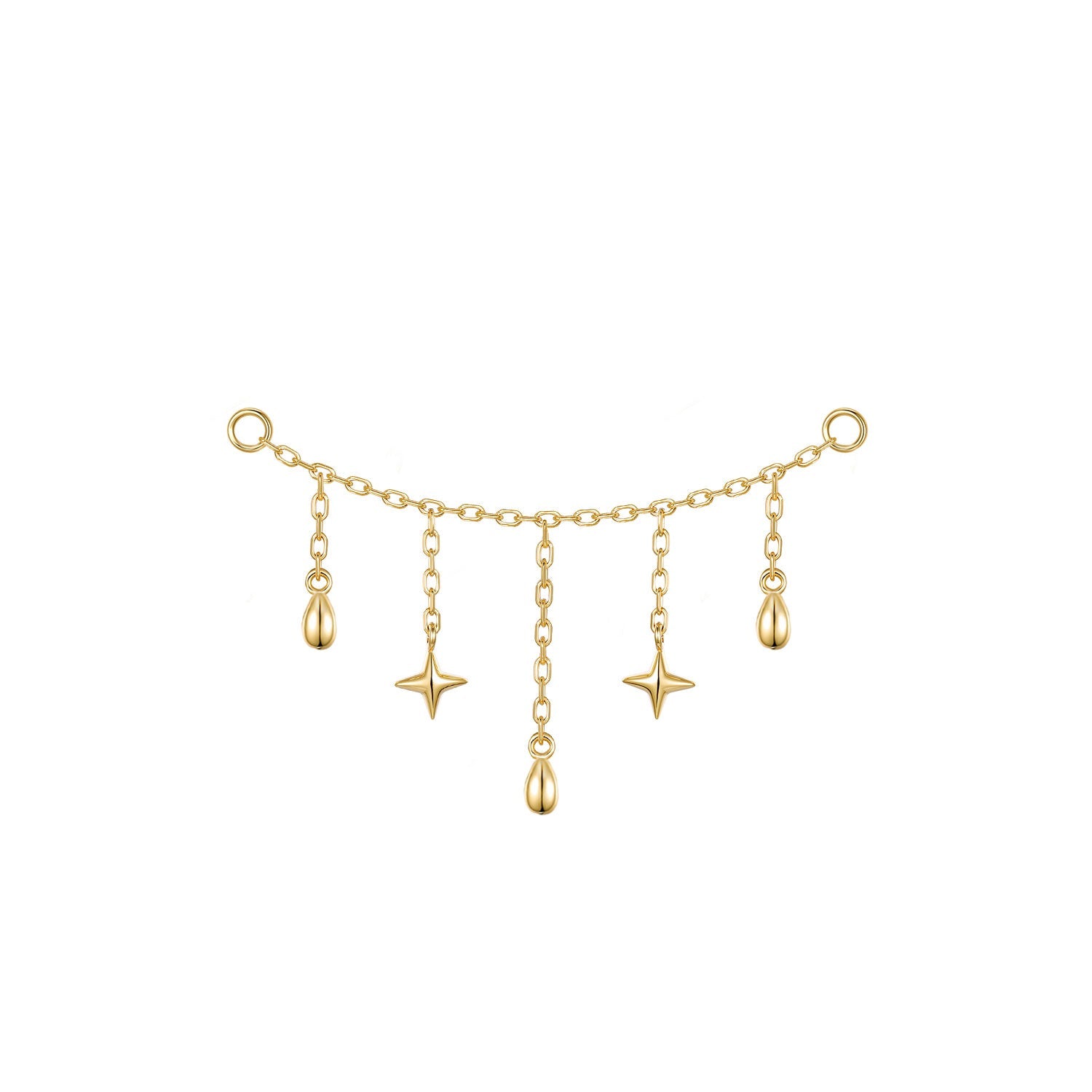 A chain with dripping solid gold 4 point stars and pear gold beads with beautiful movement