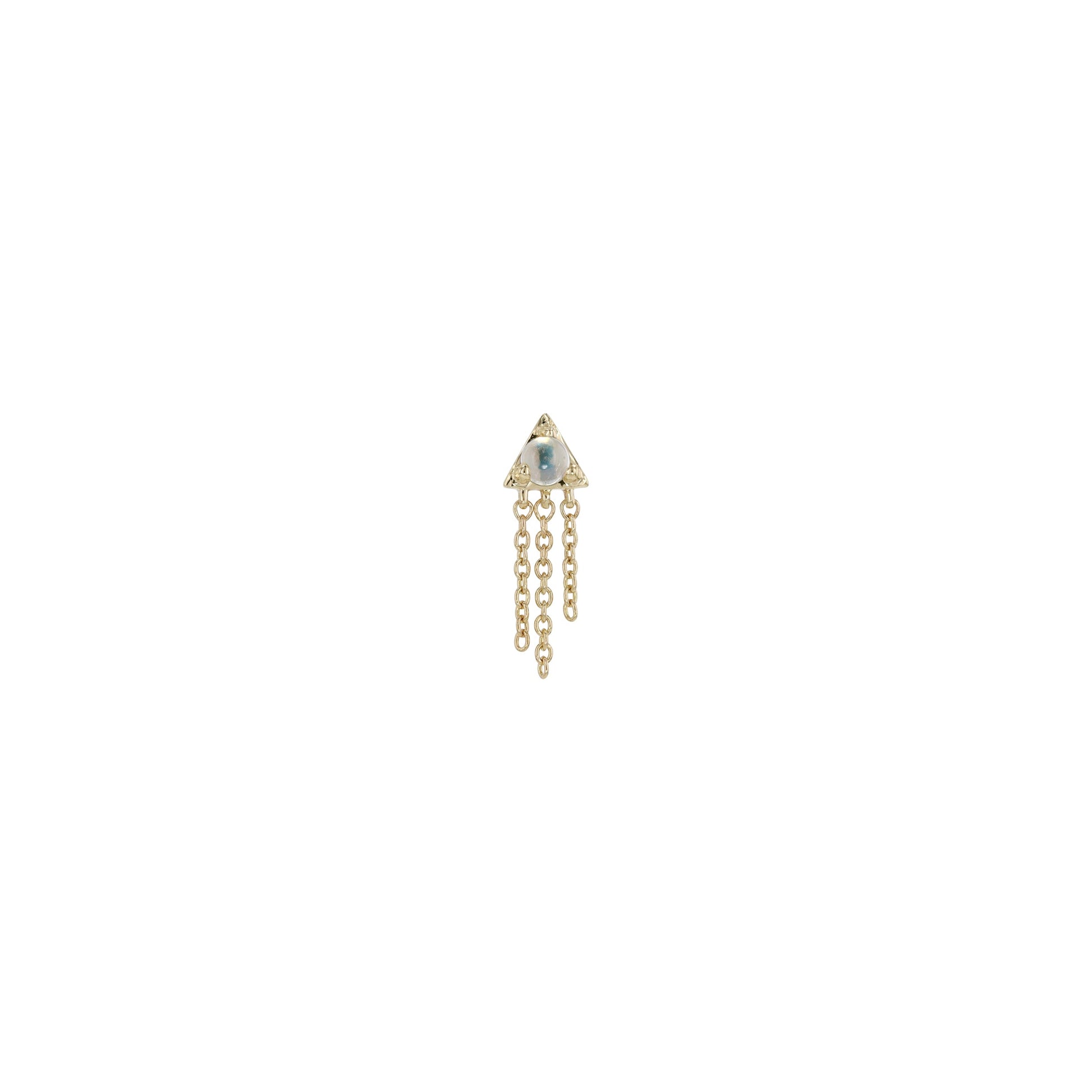 Single cabochon gemstone set on a triangle platform + 3 cascading chains of different lengths