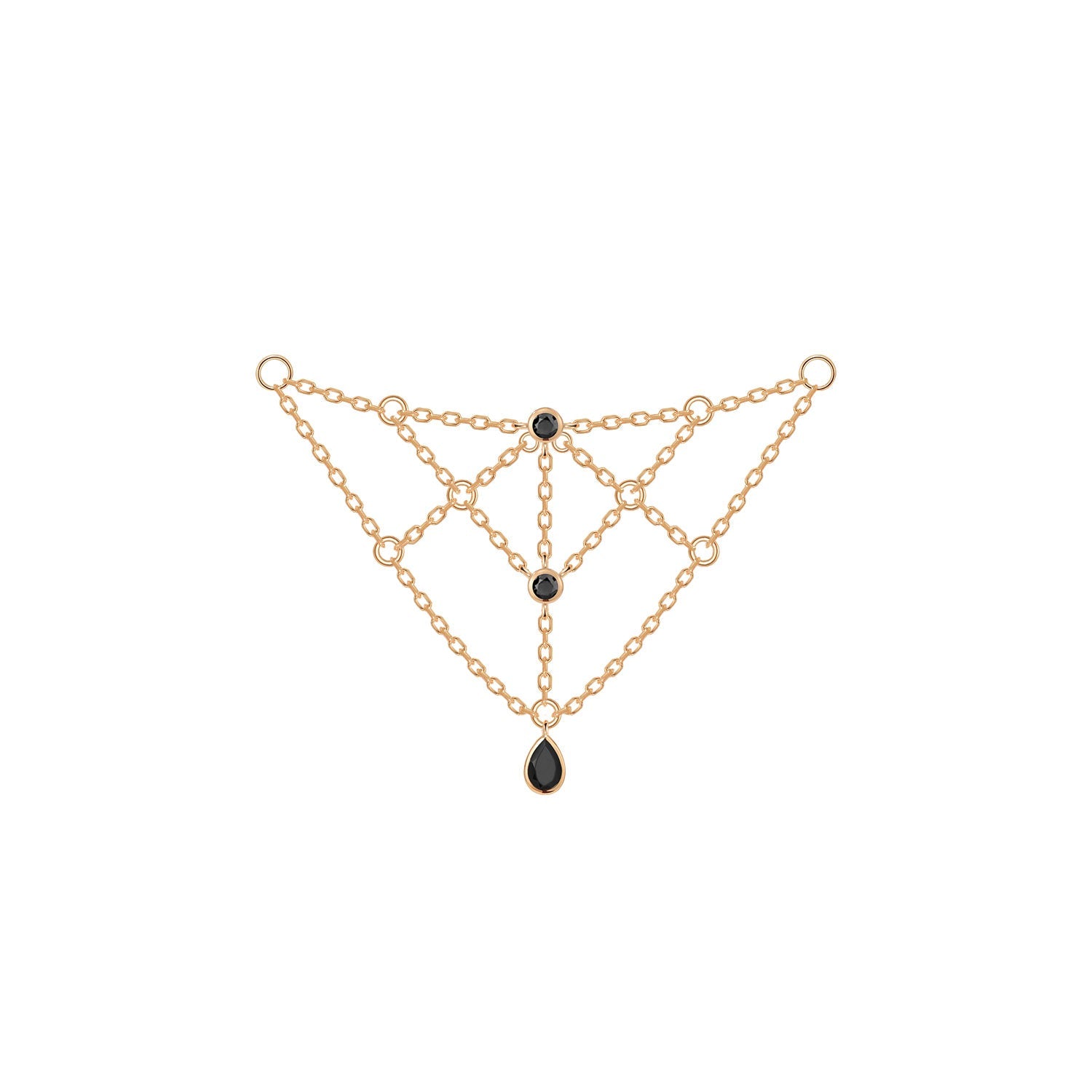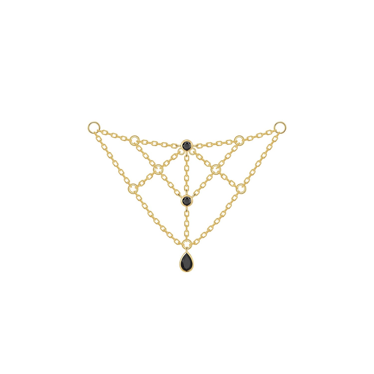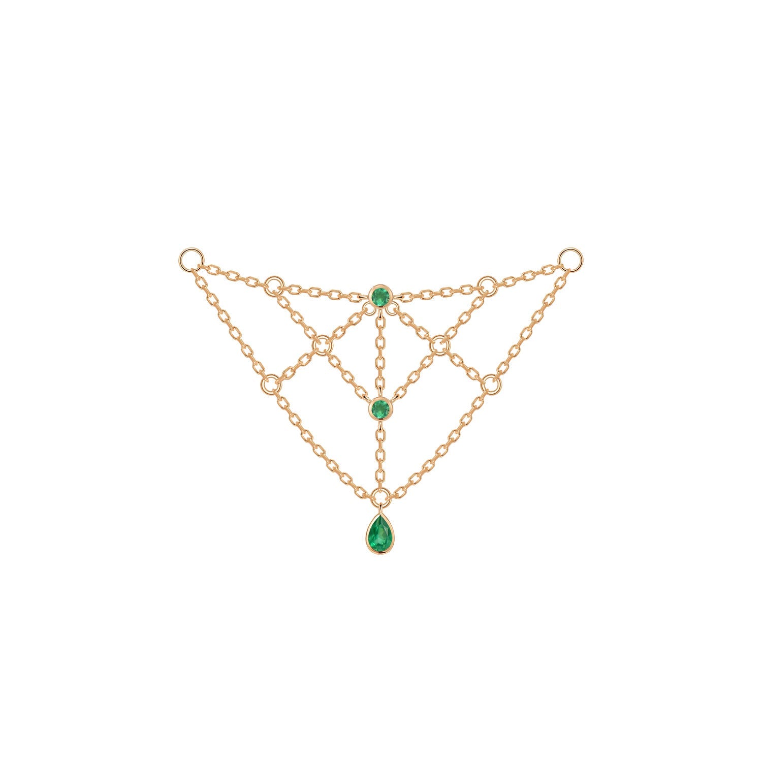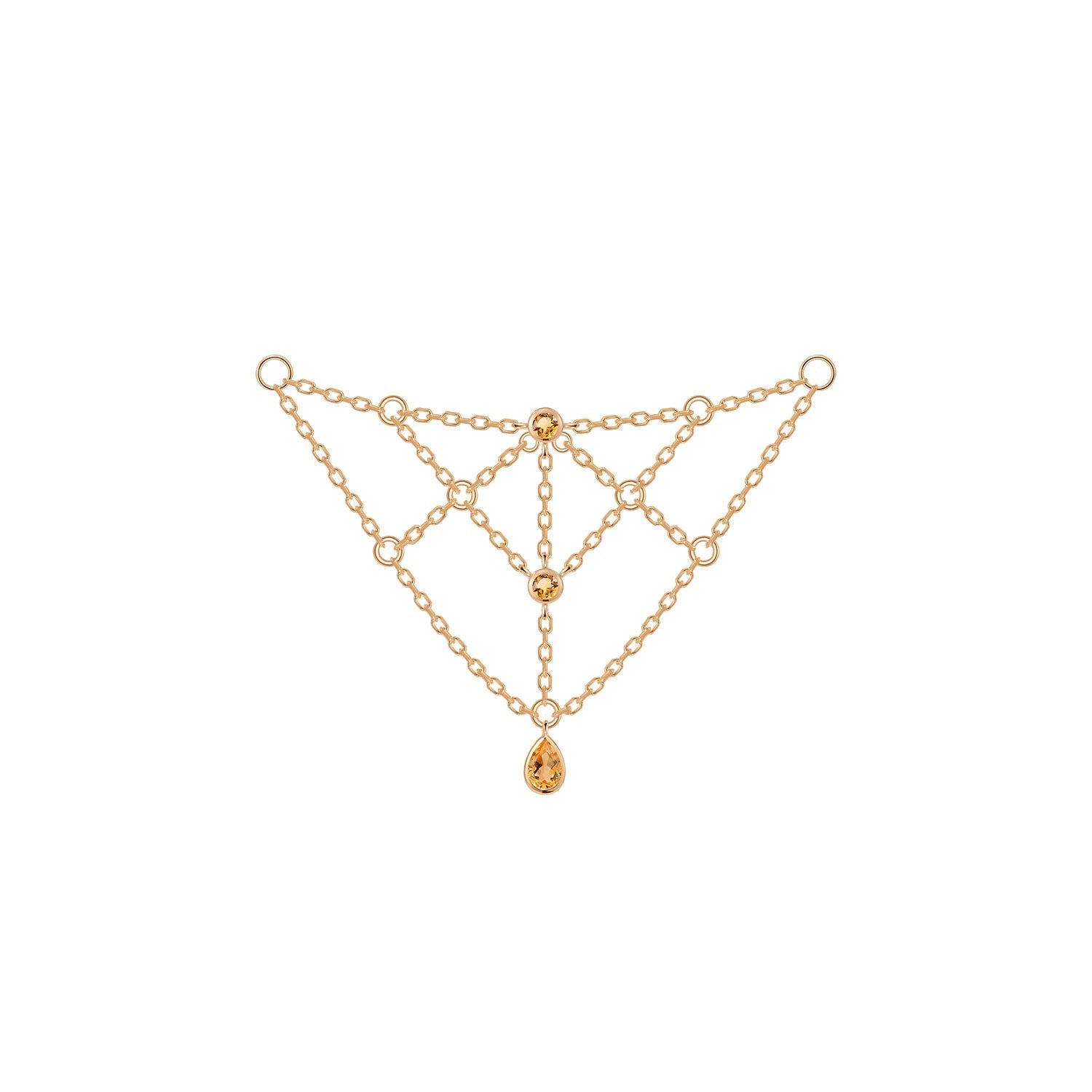 A web of delicate chains with bezel set round and pear gemstones adorning along the center